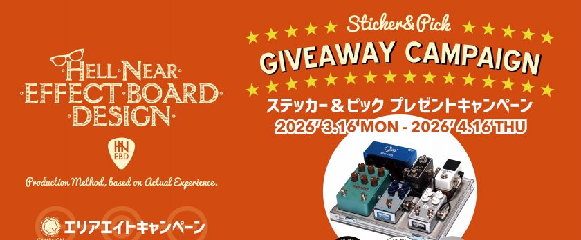 はい、昨年初の試みとして、ギターのレシピの山脇 オサムさんと私、ヘルニアエフェクトボードデザインの根尾 悠が選んで弾いて、弾いて選んだ厳選エフェクターでこだわりをつめて組んだ完全パッケージの小型エフェクターボード、AREA 8 BOARD を発売させていただきました。