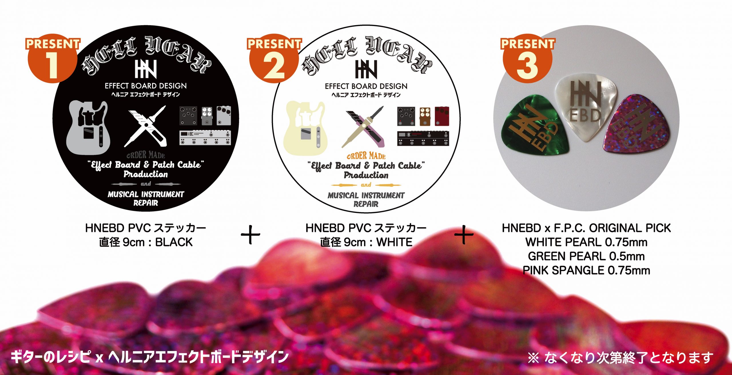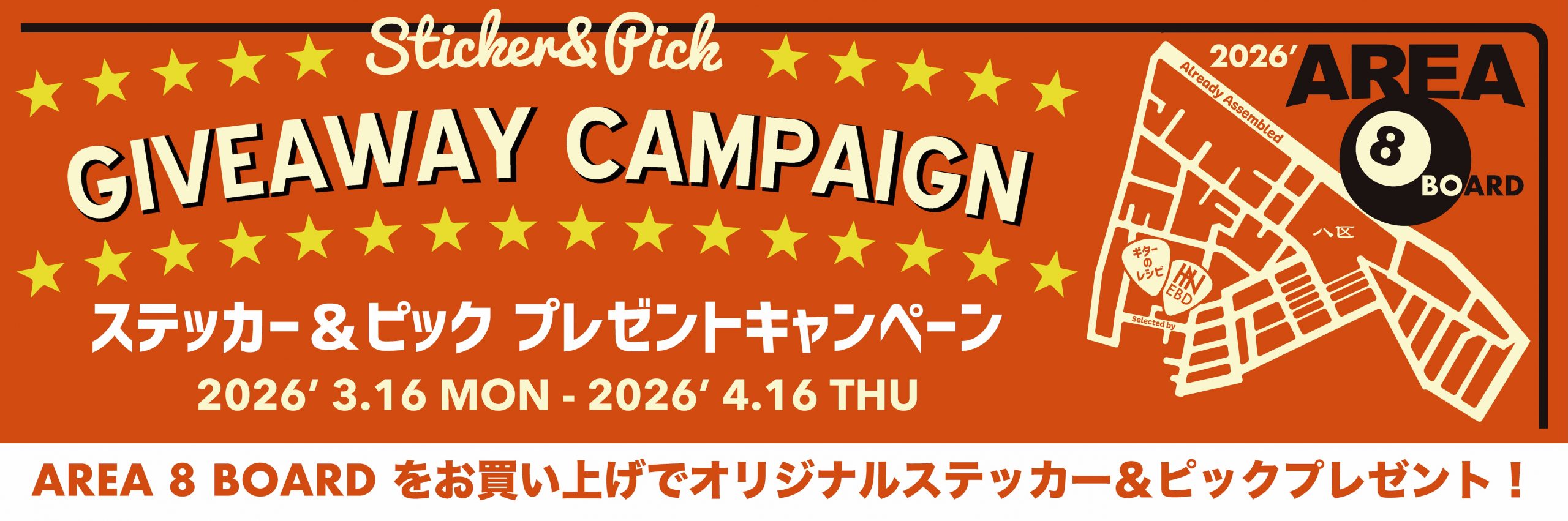 本日より、4月16日までの期間 AREA 8 BOARD をお買い上げの方へHNEBD オリジナルステッカー(2種類)と HNEBD x F.P.C. PICK(3 種類)をプレゼントいたします。
